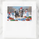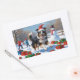 Rough Collie Running in Snow with Christmas Hat Rectangular Sticker