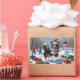 A graceful Rough Collie runs joyfully through the snowy winter scene, wearing a festive red Christmas hat. This charming design highlights the breed’s flowing coat, intelligent eyes, and gentle personality while capturing the warmth and joy of the holiday season. A heartwarming winter moment full of festive cheer.