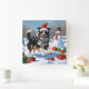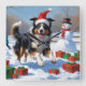 Rough Collie Running in Snow with Christmas Hat Square Wall Clock