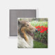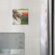 Pretty Rough Sable collie n RED tulips on a fridge magnet