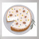 A round cheesecake with a slice out of it. This design looks really effective on these Poster