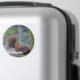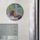 This round magnet features chickens playing on a birdbath. Great stocking stuffer or gift for a friend.