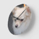 The clock did not take as long to arrive as I thought it might and was extremely well packaged. I didn't do the measurements so I didn't realize it is a little smaller than the average clock but that does not matter (just make sure you check if that's important to you).It is really nifty! It seems very solid and well made not flimsy at all. It has been going well and has kept good time in its few weeks on my wall. Nice product. Gets noticed too! Nicer in real life than the picture but true to the picture