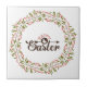 Cute round colourful floral wreath with white bunny-Happy Easter. Customisable ceramic tile template