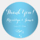 Round custom Thank You blue wedding stickers with little hearts and customisable text