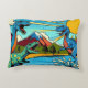 Decorative cushion with dinosaur design, different designs on each side.