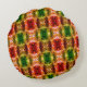 Round drawing generate red, green, and gold shapes cushion