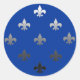 Round stickers in your choice of two sizes, with a large fleur de lis design. This one has a pattern of silver fleurs de lis, with a deep blue background, but you can customise that background colour to anything you like. The fleur-de-lis is a stylised lily (in French, fleur means flower, and lis means lily) or iris used as a decorative design or symbol. It's a symbol of all things France, and Quebec, and New Orleans and many other places.