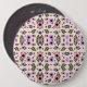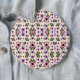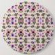 Round floral mouse pad featuring a symmetrical pattern with pink, purple, and black flowers on a light background. The design is vibrant and lively.