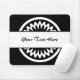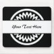 A stylish mouse pad template with a circular geometric flower motif and white band ready to be customised with your text.