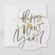 Round Happy New Year in grey handwritten text Holiday Card