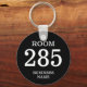 Round hotel room keychain with custom numbers. Create your own keychains for hospitality business, hotels, motels, rental apartments, lodges, cabins, rental house, dorm, locker, office, suite, bedroom, room, salon, spa, school class, storage unit facility and more. Black and white or custom colours. Double sided print. Elegant modern typography template. Change into any font.