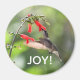 3" round magnet with a picture of a hummingbird feeding on a red flower