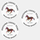 Round business labels with logo template in centre. Text curves around the label with name of company / business at the top in bold text. Include a website, building address, or contact info at the bottom. Two other short lines of text can be added above and below the logo. The logo template (unicorn image) is rectangular and your logo will fit inside the template space, no matter the shape.