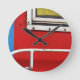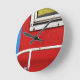 This cool abstract art, medium round wall clock features a close up detail photograph from a colourful old train car.
