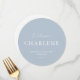 Keep your wedding table chic and simple with this minimalist round menu card in dusty blue. Featuring a clean three-course layout, it’s the perfect modern touch for elegant, coastal, or romantic weddings. Fully customisable with your own menu.