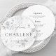 Keep your wedding table chic and simple with this minimalist round menu card. Featuring a clean three-course layout, it’s the perfect modern touch for elegant, coastal, or romantic weddings. Fully customisable with your own menu.