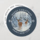 Unique Christmas card with a white winter forest scene with deer along with Merry Christmas & Happy New Year holiday design on a unique shaped ROUND card! Edit your name on the back and the current year on the front.