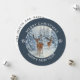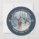 Unique Christmas card with a white winter forest scene with deer along with Merry Christmas & Happy New Year holiday design on a unique shaped ROUND card! Edit your name on the back and the current year on the front.