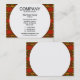 A business card template with a round centre panel in white with a patterned border. Suitable for many types of business, could also be customised in other ways, used as a mini flier or advertisement. The reverse of the card has the same white panel layout, which can be used for additional information, or left left plane for writing.