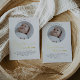 A modern, minimal Baptism Invitation featuring a round photo and the word 'Baptism' in a calligraphy style font. The 'Baptism of [child name]' typography is printed in real gold foil. Please note that you cannot change the 'Baptism' word but you can edit all of the other text in this design.