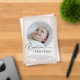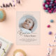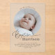 A modern, minimal Baptism Invitation featuring a round photo and the word 'Baptism' in a calligraphy style font. Please note that you cannot change the 'Baptism' word but you can edit all of the other text in this design. You can change the colour or you can delete it and replace it with a new text box if you prefer.