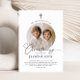 A modern, minimal joint Christening Invitation featuring a round photo and the word 'Christening' in a calligraphy style font. Please note that you cannot change the 'Christening' word but you can edit all of the other text in this design. You can change the colour or you can delete it and replace it with a new text box if you prefer.