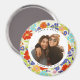 Celebrate a favourite moment with friends with this round photograph magnet and whimsical, retro coloured painterly wild flower pattern frame with editable text to memorialise a special event or person.