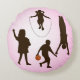 round pillow with children playing pink background