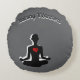An original design created for relaxation and tranquil spaces. A light blue toned cushion features the inspiring phrase "Raising Vibrations" shadowed, bold, black & white lettering, complemented by a sleek shadowed black silhouette. A striking red heart adds a pop of color, symbolizing love and positive energy. Perfect for adding a touch of motivation,comfort and warmth to any space, with its unique blend of modern design, simple and uplifting sentiment.