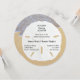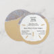 Round sand dollar beach wedding invitations. Realistic shell image with black, calligraphy font, on a sand-look background. Informal text has the date at the top with names of the bride and groom in the centre. A reception address can be included. Square paper option as well.