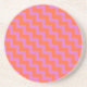 A pretty round Sandstone Coaster or drinks mat, with a pattern of Magenta Pink and Bright Orange chevrons or zigzags.