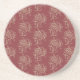 An elegant sandstone Coaster, with a formalized floral pattern in beige on a rich burgundy background.