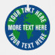 Round save planet earth world map custom Metal Ornament. Blue and green world map globe logo with white text template. Create ornament for global warming, climate change environmental issues, nature preserve, green energy, forest protection, protests, plastic soup, recycle, recycling etc. Land sea drawing. Save the planet, save the earth!