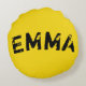 Yellow and black Round Scribbles Kid's Decor Pillow. Playful, fun design for a child's bedroom or playroom. Keep the name or monogram option or use the double-sided pattern option. Change the background colour for a custom look. Be unique!