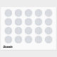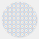 Round sticker design with a white background features a geometric pattern of blue diamonds with red dots. Displayed is a single sticker and a sheet of stickers.