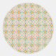 Round sticker with a floral geometric pattern in orange, yellow, and blue on a light background. Below, a sheet shows multiple identical stickers.