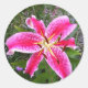 Pink Stargazer Lily on round stickers.