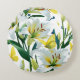 White Background Round Throw Pillow, Yellow Butterfly White Lily Collection;
