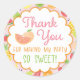 This round "Thank You" sticker compliments the TWO-TTI Fruitti invitation design with the same sweet fruit illustrations and colour scheme. This sticker would look great on a take-away or goodie bag after the party is complete!