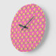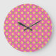 Round Wall Clock: Primroses on Deep Pink, Polkas Large Clock