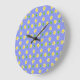 Round Wall Clock: Primroses on Violet Blue, Polkas Large Clock
