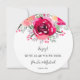 Put this round thank you card on guests' dinner plates at your Rehearsal Dinner, Wedding Reception, bridal shower or any occasion featuring shades of pale pink, cerise pink, fuchsia pink to marsala pink flowers and two pink champagne glasses. CHANGE the background colours on front and back to anything. Choose Matte Finish if you prefer thicker papers. MATCHING ITEM in our store.
