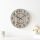 This amazing clock features a wood effect background and would look good on any wall. Clear numerals and minute marks in black make this piece a centre piece in any home. The text can be changed to suit your own requirements.