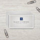Rounded corners ophisticated, subtle, custom monogram business card. Refined and elegant light background with customisable initial showcased in sapphire blue colour display square.