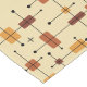 This atomic-age inspired mid century modern design has bold lines and geometric shapes in shades of orange and yellow