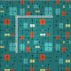 This atomic-age inspired mid century modern design has bold lines and geometric shapes in teal, turquoise, yellow and orange.