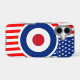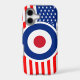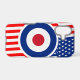 A vibrant US flag roundel design graphic print. Good for a patriotic occasion, sports, or for a gift with a retro ska mod look.