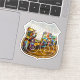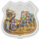 This sticker celebrates a true icon of the Mother Road with a striking design. The graphic features the classic Route 66 road sign shape with "Route 66" prominently displayed. The background is an artistic depiction of the famous Cadillac Ranch, showcasing the cool, half-buried cars covered in layers of spray paint. This sticker is a perfect tribute to the vibrant art and eccentric spirit that defines a journey along the historic highway, ideal for your laptop, water bottle, or road trip journal.