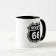 Route 66 road sign with triple outline and age-crack distress. T-shirts, sweats, cards, gifts.